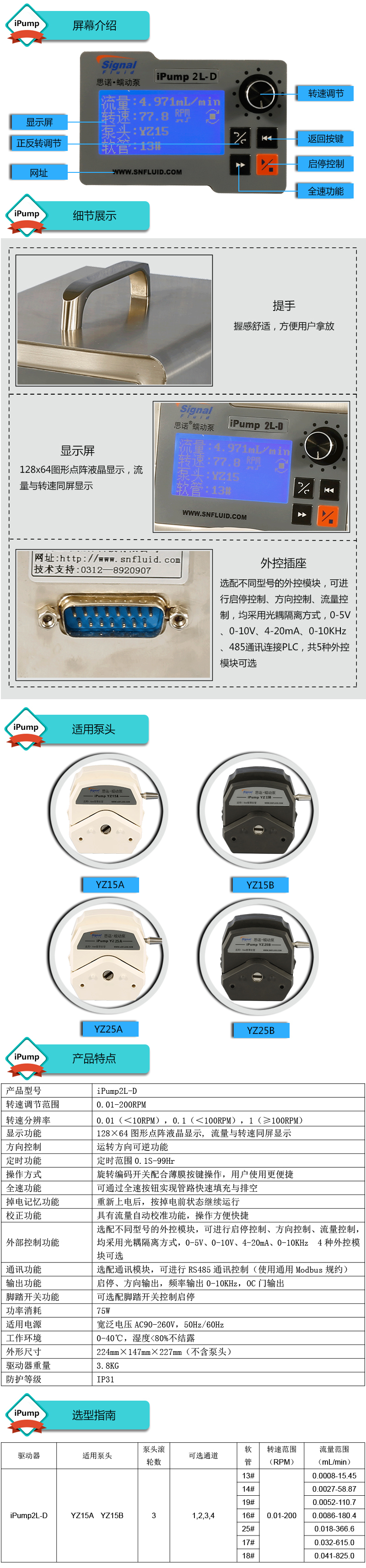 ? ? ?1.流量范圍:0.0008-825.0mL/min ? ? ?2.獨有的定時功能,定時定量添加,使用更便捷 ? ? ?3.大扭矩,適合多泵頭串聯使用 ? ? ?4.流量與轉速同屏顯示,流量校正 ? ? ?5.流量精度高達±0.5%以內 ? ? ?6.304不銹鋼外殼,易擦拭,耐腐蝕 ? ? ?7.采用進口電機驅動芯片,性能好 ? ? ?8.線路板全部三防漆處理,防腐、防潮