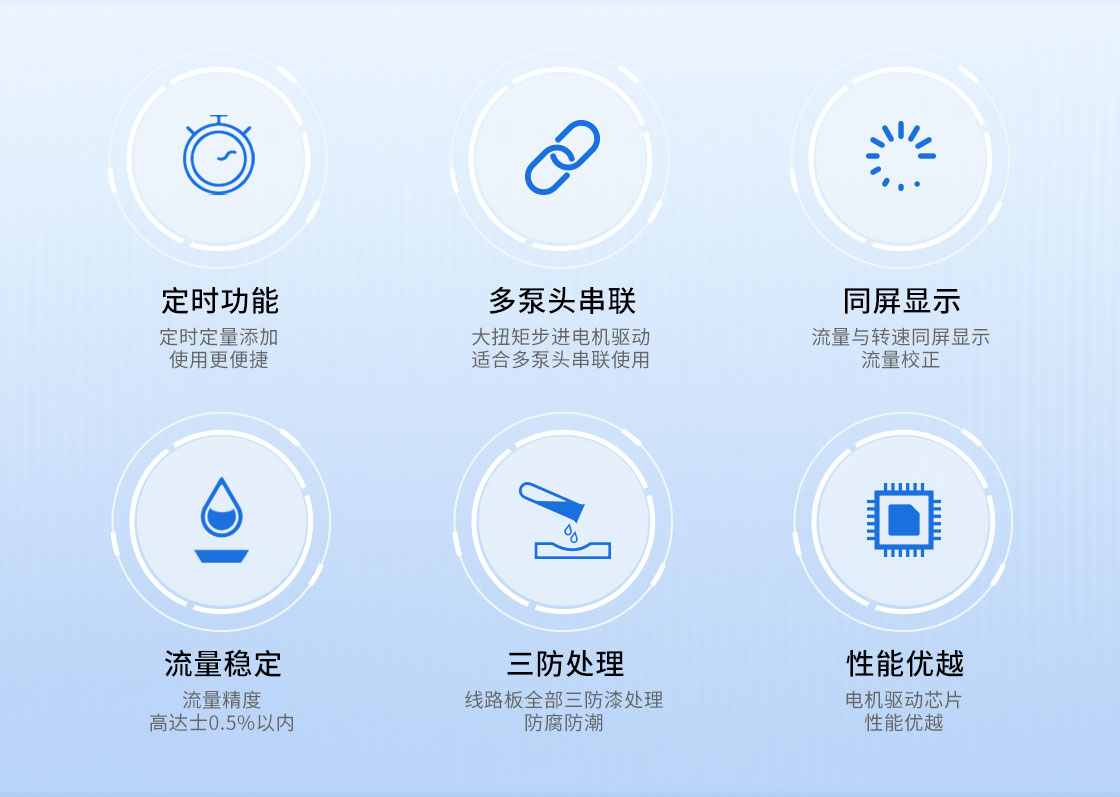 2.大扭矩步進(jìn)電機(jī)驅(qū)動(dòng),適合多泵頭串聯(lián)使用;