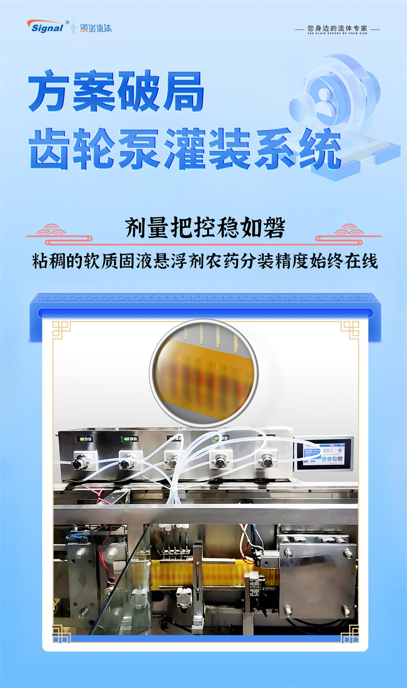 一位長期使用我司蠕動泵灌裝水劑農(nóng)藥的老客戶,因新開發(fā)粘稠的軟質(zhì)固液懸浮劑而面臨設(shè)備瓶頸,我們迅速響應(yīng),為其量身推薦了更優(yōu)解決方案——高性能齒輪泵灌裝系統(tǒng)。