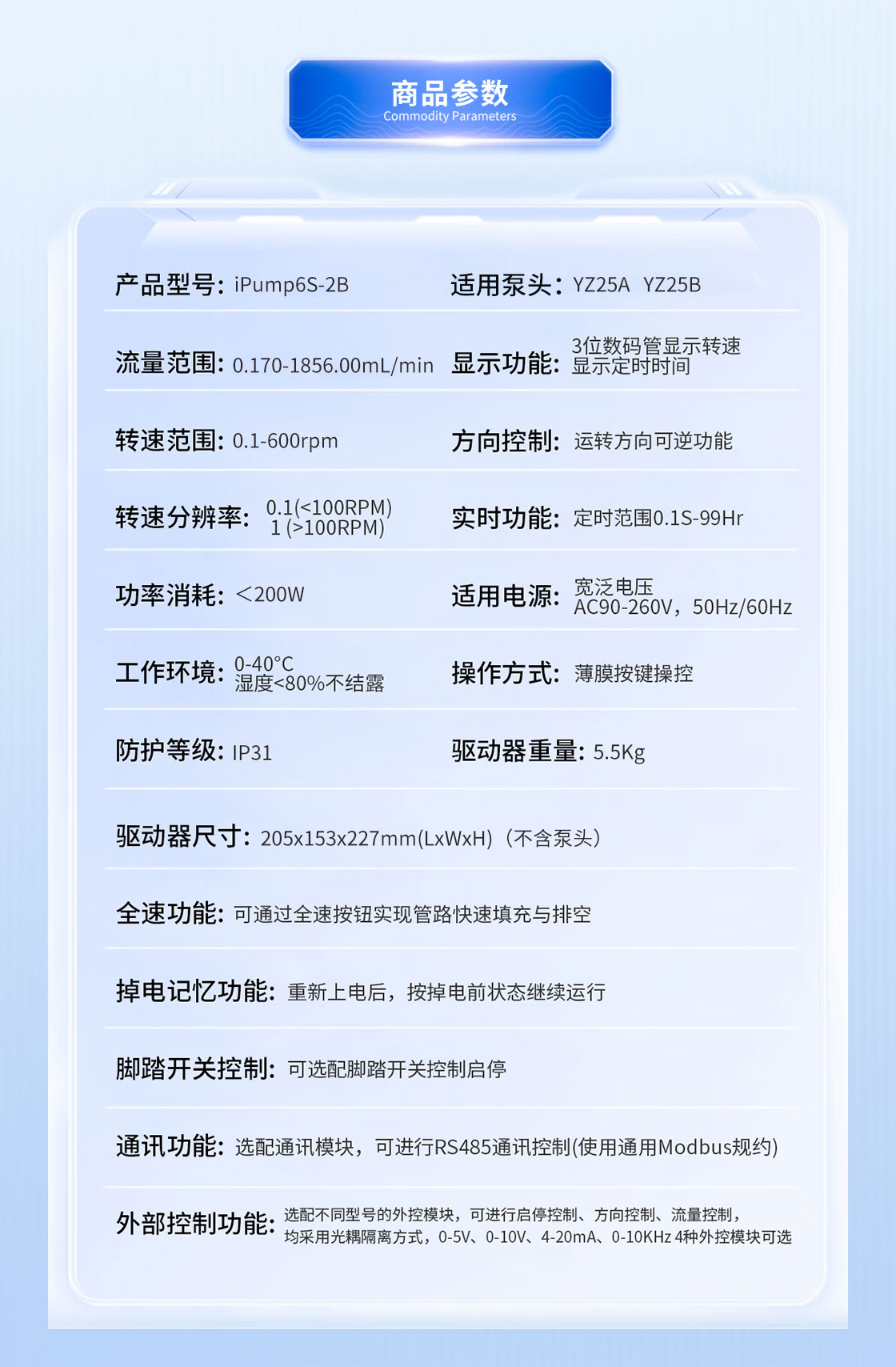 · 手動(dòng)調(diào)節(jié)轉(zhuǎn)速,也可通過(guò)外控接口進(jìn)行自動(dòng)控制